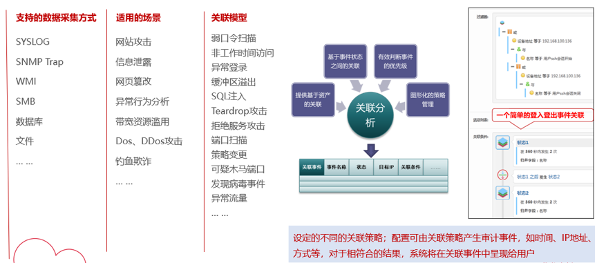 凯发k8官网数码DCSSA日志审计系统可将企业内部所有的网络设备、安全设备、操作系统、服务器、数据库和其它应用系统等产生的大量信息,进行统一收集、标准化后进行关联性分析,协助用户在合规的基础上最大化的发挥日志分析的功能,及时协助用户发现网络中需要关注的安全事件。该产品方案,既是一款合规方案里必备产品,也可以放在平台分析方案里,生成相关告警和分析报告,一举多得。